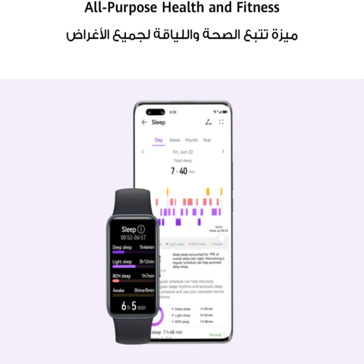 تعزز لياقتك: 100 وضع تمرين رياضي متاح لتختار من بينها. سيتعرف السوار حتى على الجري والمشي، ويكتشف تلقائيًا أيًا من ضربات السباحة الأربع الرئيسية، بالإضافة إلى توفير مراقبة في الوقت الفعلي لمعدل ضربات القلب أثناء السباحة.