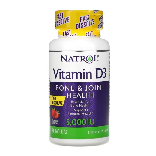 فيتامين د3لصحة العظام والمفاصل فراولة، 5000 وحدة دولية - من ناترول: سريع الذوبان