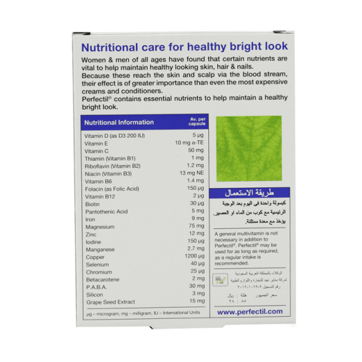 بيرفيكتيل غني بالسلينيوم و البيوتين و الزنك الضروريين لجمال و صحة مظهرك.