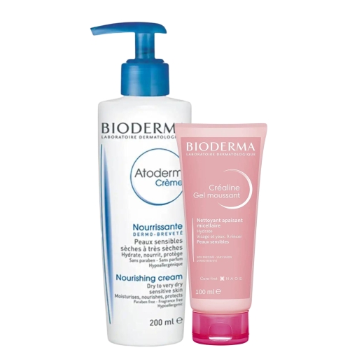 عرض بايو ديرما للبشرة الجافة والحساسه كريم مرطب 200 مل + غسول 100 مل هدية: غسول جل الميسيلار المهدئ للبشرة الذي يعزز ترطيب البشرة الطبيعي ينظف بلطف ويزيل مكياج الوجه والعيون يرطب* يلطف ويهدئ التهيجات درجة تحمل جيدة للبشرة والعيون - لا يسد المسام - خالي من الصابون - غير معطر - درجة الحموضة الفسيولوجي