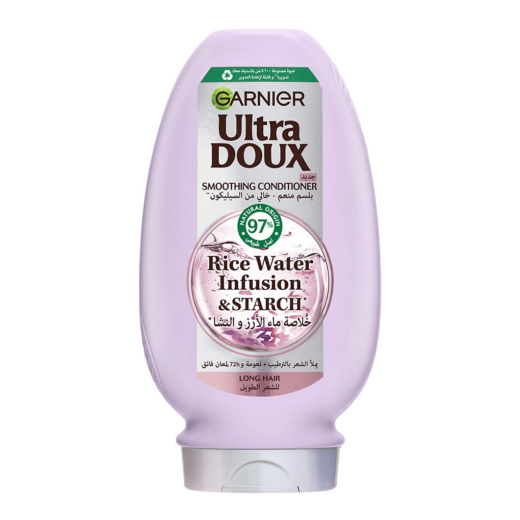 بلسم ألترا دو بخلاصة ماء الأرز والنشا - من غارنييه: سم شعر بتركيبة غنية بماء الأرز والنشا تعمل على ترطيب الشعر بعمق.