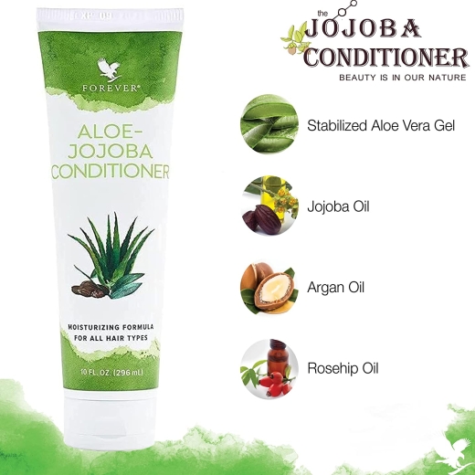 بلسم الشعر بالصبار والجوجبا - من فوريفر: يغطي بلسم الشعر المصنوع من الجوجوبا جذور الشعر للتخلص من الأطراف المتقصفة.جل الصبار وزيت الجوجوبادرجة حموضة متوازنة