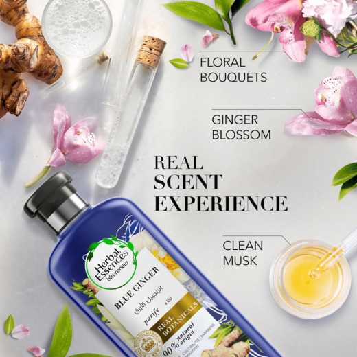 بلسم طبيعي بالزنجبيل الأزرق لتنقية الشعر بيو رينيو - من هيربال: نقي شعرك وفروة رأسك مع بلسم هيربل إيسنسز بالزنجبيل الأزرق. تركيبته الغنية بمضادات الأكسدة تزيل الشوائب، وتمنح شعرك نعومة وانتعاشًا يدومان طويلًا. آمن على شعرك لخلوّه من البارابين. ينقي الشعر يزيل الشوائب يحتوي على الزنجبيل الأزرق خالي من البارابين آمن للشعر المصبوغ