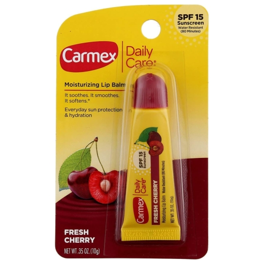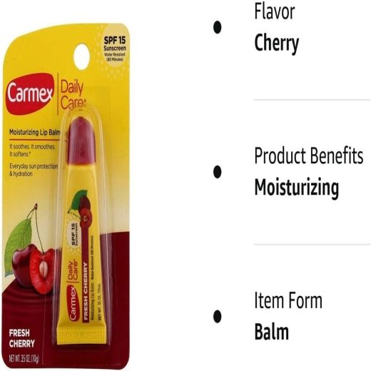مرطب شفاة بطعم الكرز - من كارميكس: مرطب شفاه طبي مريح قابل للعصر لتهدئة الشفاه الجافة المتشققة وحمايتها ويوفر حاجزًا وقائيًا طويل الأمد للمساعدة في تعزيز الشفاء، كما ينساب بسلاسة للمساعدة في تليين وترطيب الشفاه بزبدة الكاكاو المرطبة ويبرد الشفاه ويلطفها بالكافور والمنتول