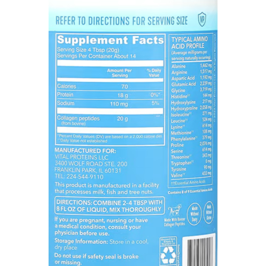 مكمل بيبتيدات الكولاجين بدون نكهات 284 جم - من فيتال بروتينز: مظهر شبابي** مرونة الجلد** ترطيب البشرة** صحة المفاصل والعظام** دعم الشعر والأظافر**