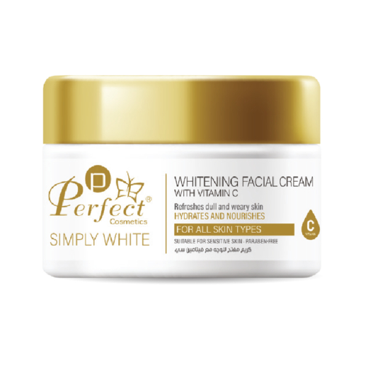 كريم تبييض الوجه بالنعناع وفيتامين سي - من بيرفكت: كريم التبييض المثالي يعمل على تنشيط البشرة وتفتيحها وتوحيد لونها. كما يمنحها توهجًا مشرقًا وشبابيًا وصحيًا. وهو غني بفيتامين سي وفيتامين ب3 اللذين يعملان على تقليل البقع الداكنة والاحمرار مع تنعيم ملمس البشرة.