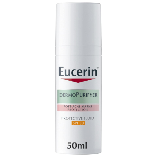 يمكّنك Eucerin DermoPure Protection Fluid SPF 30 من منع الشوائب والتغلب أخيرًا على علامات ما بعد حب الشباب بثلاثة عوامل رئيسية: