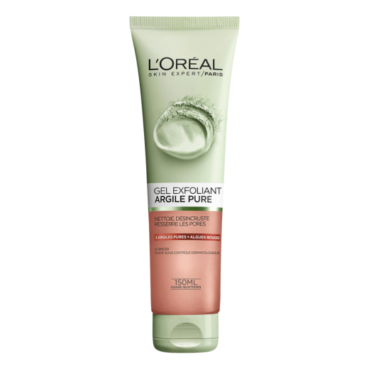 غسول مقشر بالطين النقي والطحالب الحمراء - من لوريال: قشري بشرتك وفتحيها ونظفيها باستخدام غسول جل التقشير بالطين النقي من لوريال باريس.