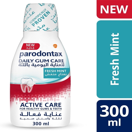 غسول فم اليومي لنزيف اللثة 300 مل - من بردونتكس: اللثة السليمة هي أساس صحة الفم. يمكن أن تحدث مشاكل اللثة بسبب تراكم بكتيريا البلاك. عن طريق إزالة البلاك حول خط اللثة وبين الأسنان ، غسول فم بارودنتكس للعناية اليومية باللثة يساعد على منع مشاكل اللثة من العودة. غسول فم بارودنتكس للعناية اليومية باللثة هو رعاية نشطة لصحة اللثة والأسنان:
