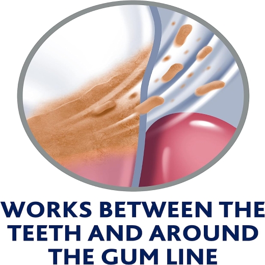 يعمل بين الأسنان وحول خط اللثة -