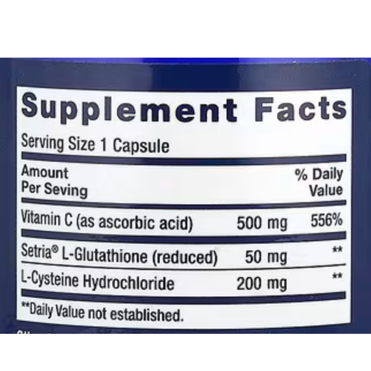 مكمل الجلوتاثيون، سيستين وفيتامين جـ، 100 كبسولة- من لايف اكستانشن: خالٍ من الجلوتين