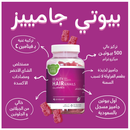 حلوى بيوتي الشعر والأظافر - 60 حلوى - من سينسلاب: صمغ الجمال للشعر والأظافر هو أول صمغ متعدد الفيتامينات لزيادة طول وقوة شعرك وجمال بشرتك في نفس الوقت.