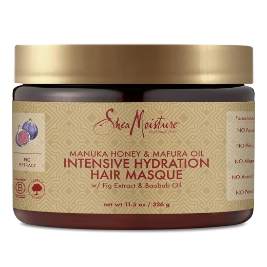 قناع الترطيب المكثف للشعر الجاف والتالف بعسل المانوكا وزيت المافورا- من شيا مويستشر: عسل المانوكا: يوفر ترطيبًا قويًا ويساعد على تجديد الرطوبة في الشعر الجاف.
