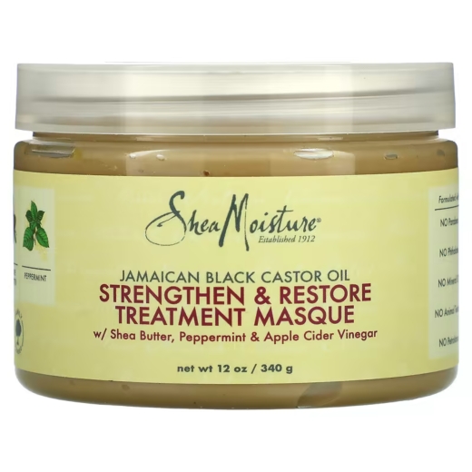 قناع علاجي با زيت خروع أسود جامايكي، للتقوية والتجديد - من شيا مويستر: غني بزبدة الشيا، والنعناع الفلفلي، وخل التفاح
