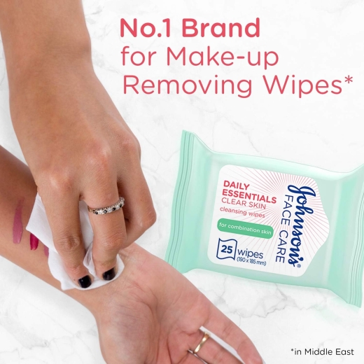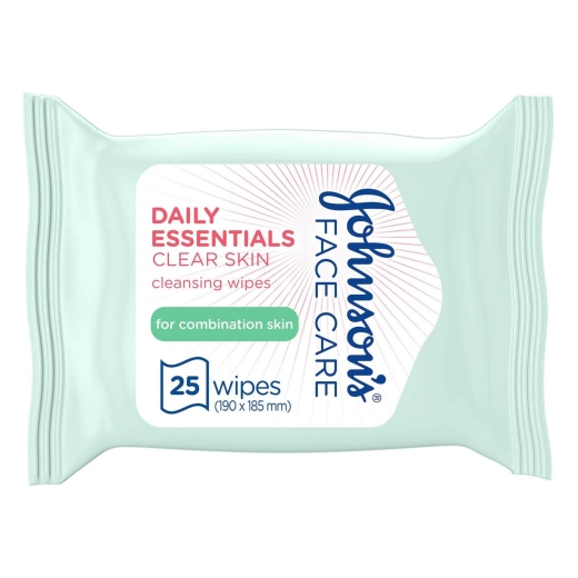 مزيل مكياج مناديل للبشرة المختلطة - من جونسون: جونسون مناديل تنظيف البشرة الشفافة من دايلي اسينشالز لطيفة على بشرتك مع إزالة الأوساخ والشوائب بفاعلية، مما يجعل بشرتك نظيفة ومنعشة وخالية من المكياج. تم تركيبه لأنواع البشرة الدهنية إلى المختلطة، تساعد مناديل جونسون Daily Essentials Clear Skin Cleansing على التخلص من تلك المناطق اللامعة وبقايا المكياج، بما في ذلك الماسكارا المقاومة للماء دون فرك. حافظ على بشرتك ناعمة ومنتعشة بشكل جميل مع مناديل تنظيف البشرة الشفافة من جونسون Daily Essentials