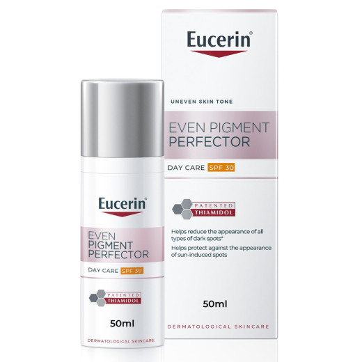 كريم النهار المضاد للتصبغ معا 30% حماية من اشعة الشمس من يوسرين: يعد الميلانين صبغة طبيعية تعطي لونًا للبشرة. قد يتسبب التعرض لأشعة الشمس والتأثيرات الهرمونية والشيخوخة في زيادة إنتاج الميلانين ويؤدي إلى فرط تصبغ البشرة. يظهر فرط التصبغ على هيئة بقع داكنة وبقع علامات الشيخوخة (المعروفة أيضًا باسم بقع الشمس) والتي تجعل البشرة تبدو غير متساوية. يحتوي ايفين بيجمنت بيرفيكتور نايت من يوسيرين على الثياميدول، وهو عبارة عن مكون فعال وحاصل على براءة اختراع يعمل على السبب الجذري وفرط التصبغ عن طريق تقليل إنتاج الميلانين. تم اختباره سريرياً من جانب أطباء الجلدية لتقليل البقع الداكنة ومنع إعادة ظهورها. تظهر النتائج الأولية بعد أسبوعين وتتحسن النتائج بشكل مستمر مع الاستخدام المنتظم. يحتوي الكريم النهاري أيضًا على الديكسبانثينول - وهو مكون نشط معروف بدعم تجديد البشرة طوال الليل. تبدو البشرة موحدة ومشرقة.