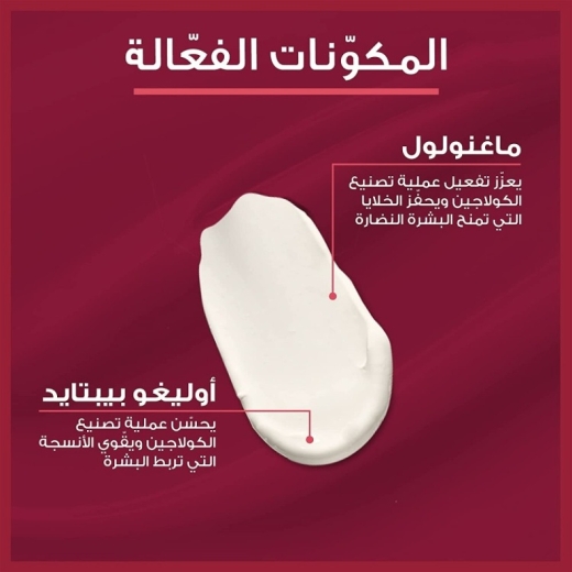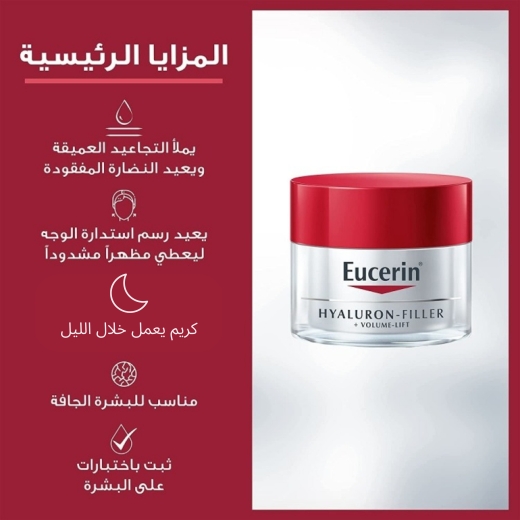 كريم هيالورن فيلر + فوليوم ليفت الليلي، - من يوسرين: تفقد البشرة بمرور الوقت الكثافة والثبات: خطوط الوجه أقل تحديدًا وتتغير ملامح الوجه بشكل واضح. تم تركيب حشو هيالورون + ليلاً من يوسيرين خصيصًا لزيادة التجاعيد العميقة وإعادة تحديد ملامح الوجه طوال الليل للحصول على تأثير رفع الرموش. مناسب لجميع أنواع البشرة. يجمع كريم الليل ثلاثة مكونات نشطة تستهدف الطبقات المحددة للجلد حيث يحدث فقدان الكثافة: يزيد المانونول من حجم وعدد الخلايا التي تعطي الكثافة، حيث تحفز ببتيدات الأوليغو شبكة الكولاجين من أجل هيكل بشرة أكثر شدًا1 وحمض الهيالورونيك بكثافة البشرة وينفخ التجاعيد العميقة. كما أنه يتضمن ديكسبانثينول لمزيد من الدعم لتجديد البشرة طوال الليل. مع الاستخدام المنتظم، يساعد حشو اليوسيرين هيالورون + رفع الحجم ليلاً على استعادة الكثافة المفقودة من أجل تحديد ملامح الوجه. تقل الخطوط الدقيقة والتجاعيد العميقة بشكل واضح، والبشرة أكثر نعومة وتماسكًا بشكل ملحوظ.