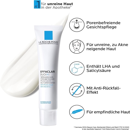 كريم علاج شوائب البشرة ديو بلس - من لاروش بوزية: تركيبة مـصممة للبشرة الدهنية والشوائب والمعرضة لحب الشباب لدى البالغين والمراهقين. مرطب يومي مزدوج المفعول يقلل من ظهـور البقع والرؤوس السوداء، ويتحكم في اللمعان ويساعد على حماية البشرة من أسباب العلامات ذات اللون الأحمر والبني التي غالباً ما تتركها البقع. يرطب البشرة لمدة 24 ساعة. هذا المرطب التجميلي مناسب أيضًا للبشرة المعرضة لحب الشباب.