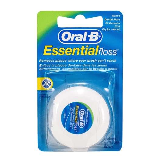 خيط تنظيف اسنان اسينشال فلوس مغلف بالشمع ومقاوم للتمزق - من اورال بي: قم بتنظيف الأماكن التي يصعب الوصول إليها بين أسنانك بسهولة مع خيوط تنظيف الأسنان اسينشال فلوس من اورال-بي. إذ أنها تساعد على استهداف تلك المناطق من تجويف الفم والتي يصعب على الفرشاة الوصول إليها وتُعتبر أرضًا خصبة للجراثيم وتراكم الجير. وبفضل خيط تنظيف الأسنان المشمع، يمكنك بسهولة تنظيف المساحات بين أسنانك دون الإضرار بجلد اللثة الرقيق. تساعد طبقة الشمع الخفيف والنسيج المقاوم للتمزق على انزلاق الخيط بسهولة بين الأسنان دون أن يعلق أو يسبب أي تهيج.