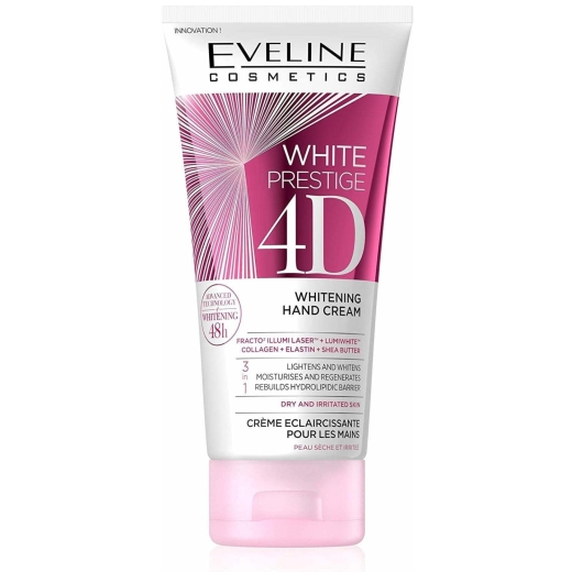 كريم اليدين مفتح وايت برستيج فور دي- من ايفلين: يعمل هذا الكريم الرائع على تفتيح طبقة الجلد الخارجية وتوحيد درجة لون البشرة ومكافحة التصبغات الشديدة لمدة تصل الى 48 ساعة بعد الإستخدام.