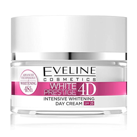 كريم مفتح للبشرة وايت برستيج 4 دي نهاري معا 25%حماية من الشمس من ايفلين: كريم وايت برستيج 4 دي النهاري من إيفلين يتميز بعدة خصائص تجعله منتجًا مفضلًا لتفتيح البشرة: