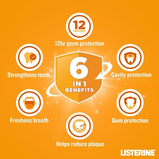 نفساً منعشاً خالٍ من الكحول: استمتع بالإحساس المنعش لغسول الفم ليسترين العناية الكاملة بالمسواك الأكثر اعتدالاً. توفر تركيبته الخالية من الكحول تجربة أقل كثافة أثناء انتعاش أنفاسك، مما يجعل فمك نقيًا ونظيفًا ومتجددًا.