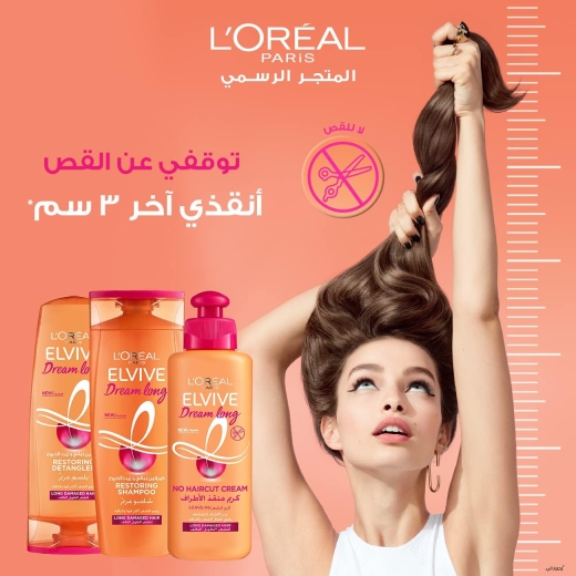 كريم الشعر الفيف طول الاحلام - لوريال: هل تحـلمين بشعر طويل؟ حافظي على آخر 3 سم من أطرافه.