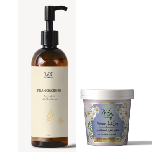 لوشن اللبان وزبدة الشيا الطبيعي + صابون مغربي هدية- من لان اورجانيك: ترطيب عميق وتجديد البشرة