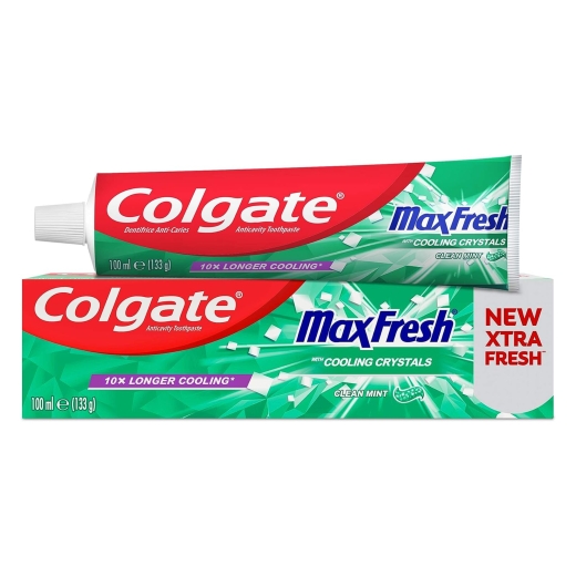 معجون أسنان ماكس فريش كلين منت الاخضر- من كولجيت: تنفس بثقة مع هذه التركيبة الفريدة - المليئة مع المثات من شرائط النفس المنعشة الصغيرة التي تعمل على إطلاق قوة من الإنتعاش لتمنحك نفس منعش يدوم طويلاً. بالإضافة، كولجيت ماكس فريش كلين منت يحارب التسوس ويبيض الأسنان ليمنحك إبتسامة صحية.