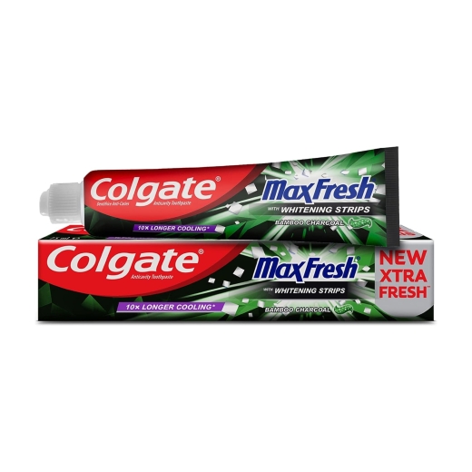 معجون اسنان ماكس فريش ب الفحم - من كولجيت: يحتوي معجون الأسنان ماكس فريش بخلاصة فحم الخيزران من كولجيت على خطوط للتبييض لمنحك نضارة تدوم طويلاً. تأتي تركيبته الهلامية المنعشة مع خطوط للتبييض تحافظ على انتعاش أنفاسك لساعات بالإضافة إلى التبييض. يأتي بنكهة فحم الخيزران في جل باللون الأخضر للتبييض يساعد على تقليل الحساسية وتعزز ترميم المينا.