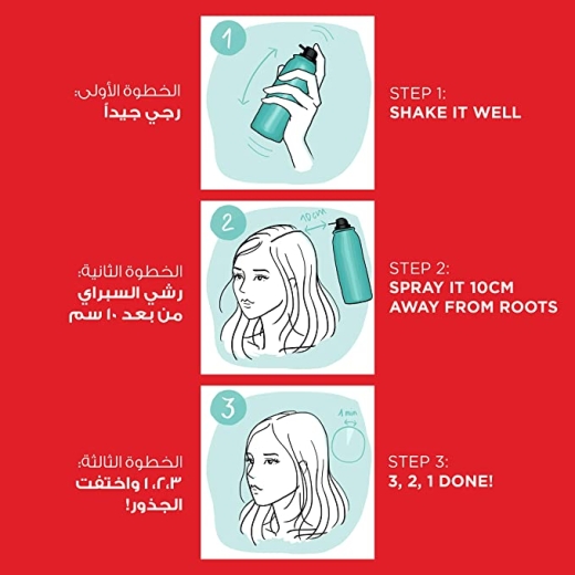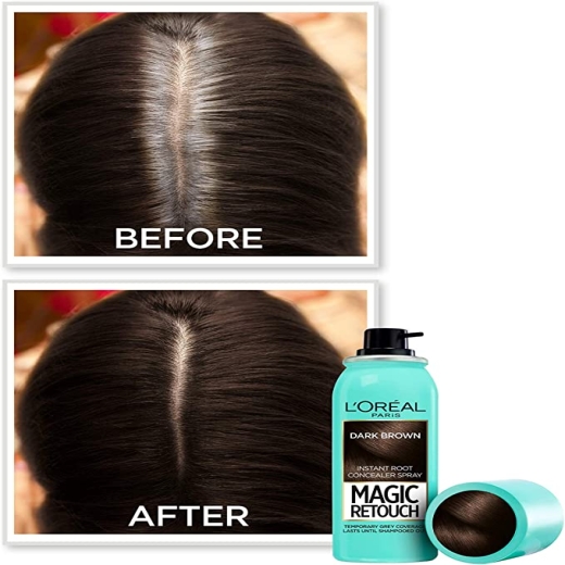 صبغة بخاخ فورية ماجيك ريتاتش لون بني غامق - من لوريال: ماجيك ريتوتش هو أول سبراي لإخفاء الجذور بفترة ثلاث ثوانٍ فقط بطريقة السبراي السهلة والمناسبة جداً . يختفي بغسلة واحدة. مع تركيبة بدون امونيا، يلائم ٨٥٪ من الألوان ويندمج معها بشكل رائع.
