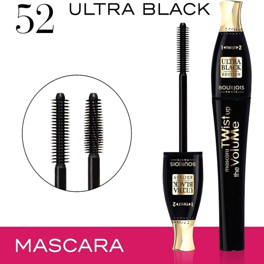 ماسكرا تويست اب ذا فوليوم لترا بلاك- من برجوا: ماسكرا مذهلة تمنحك رموش أكبر حجم وأكثر كثافة بفضل تصميم الفرشاة المميزة وتركيبتها الفريدة.