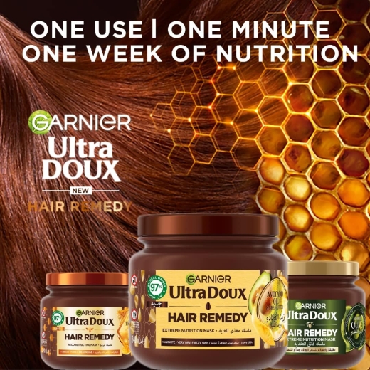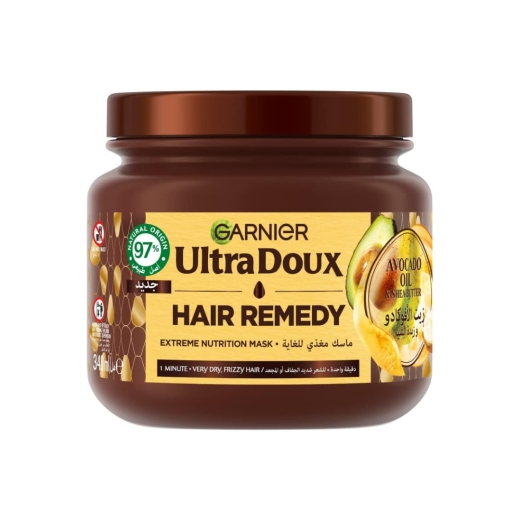 ماسك الشعر الترا دوكس فائق التغذية بزيت الافوكادو وزبدة الشيا للشعر الجاف والمجعد- من غارنييه: دقيقة واحدة - 7 مرات تغذية أكثر - مقاومة للتجعد 96 ساعة.
