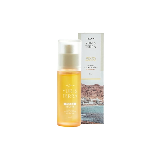 مزيج الزيت الثلاثي المورينجا والجوجوبا وثمر الورد وفيتامين سي صغير- من يوري آند تيرا: مزيج معصور على البارد من ثلاثة زيوت نباتية: المورينجا والجوجوبا وثمر الورد. بفضل فوائدها الشاملة للعناية بالبشرة، و المعزز بفيتامين سي لاستعادة نظارة البشرة وتجديدها لتصبح أكثر شباباً يومياً. إنه مزيج بقوام غني، سريع الامتصاص مع زيت عطري من الليمون واللافندر وقشر البرتقال لرائحة أكثر إنتعاشاً