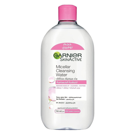 مزيل مكياج للبشرة الحساسة حجم التوفير كبير - من غارنيية: رقم ١ ماء ميسيلار عالمياً* الحل المتكامل لجميع أنواع البشرة حتى الحساسة. يناسب الوجه، العينين و الفم. ينظف، يزيل المكياج و يلطف بلمسة واحدة لأول مرة تقدم لكِ غارنييه ماء ميسيلار، تكنولوجيا مخصصة في إزالة المكياج ومكونة من جزيئات الميسيل التي تعمل على إزالة الأوساخ والمكياج اليومي الخفيف بكل سهولة. *قاعدة بيانات نيلسون، الأول عالميا من حيث وحدات البيع و القيمة، سوق منظفات الوجه، شريحة الميسيلار، ٢٨ دولة (=٧٤٬٨٪ من الدخل القومي الإجمالي العالمي)، أكتوبر ٢٠١٩