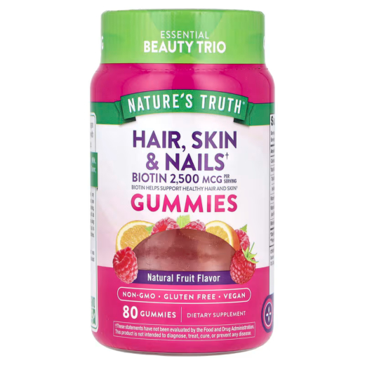 مكمل اقراص مضغ للشعر والبشرة والأظافر فواكه طبيعية- من ناتشرز تروث: ثلاثي الجمال الأساسي