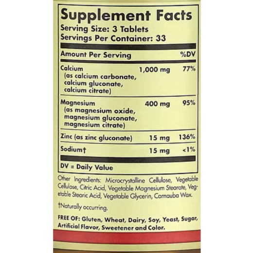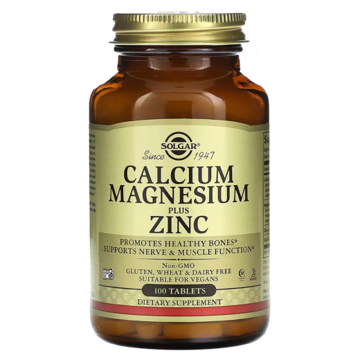مكمل الكالسيوم والمغنيسيوم والزنك 100 قرص- من سولغار: يعزز صحة العظام