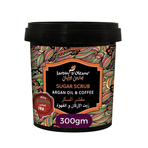 مقشر السكر بالقهوة وزيت الارغان 300 غرام - من جاردن اوليان: مقشر السكر جاردن دي أوليان غني بزيت الأركان والقهوة الذي يتميز بمفعوله القوي كمقشر استثنائي لا مثيل له. تعتبر القهوة مقشر طبيعي للبشرة، حيث تحتوي على الكافيين الذي يعمل على تحفيز إنتاج الكولاجين كما يساعد على إزالة الخلايا الميتة من الجلد ويمنحك بشرة أكثر نظارة وحيوية ونعوم