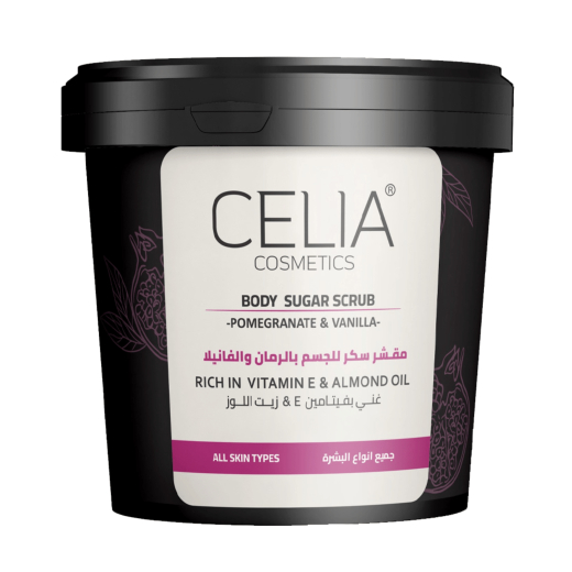 مقشر سكر للجسم بالرمان والفانيلا - من سيليا: مقشر الجسم بالرمان والفانيلا بتركيبة فريدة وعناية مثالية لجميع احتياجات البشرة.