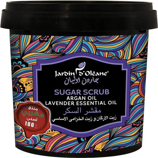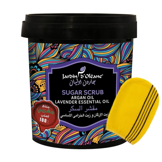 مقشر السكر بزيت الأركان وزيت الخزامى الأساسي + ليفة كوري هدية - من جاردن اوليان: مقشر السكر جاردن دي أوليان غني بزيت الأركان والخزامى الذي يتميز بمفعوله القوي كمقشر استثنائي لا مثيل له.