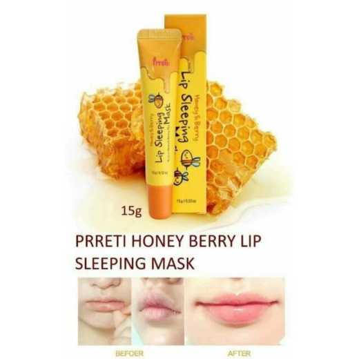 مرطب ماسك الشفايف الليلي بالعسل والتوت - من بريتي: يحتوي على العسل الذي يشكل حاجزًا لحماية البشرة من البيئة الخارجية ويمنحها اللمعان.