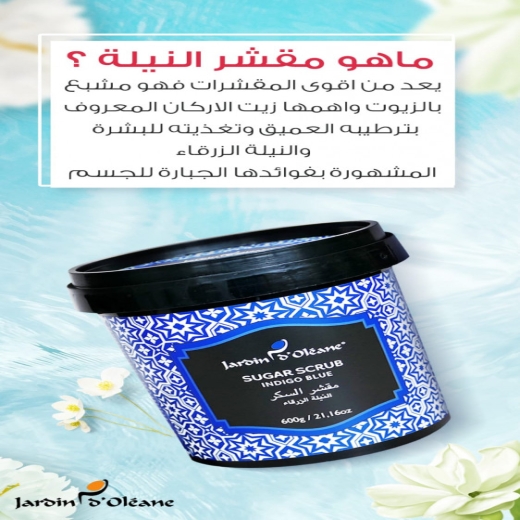مقشر السكر بالنيلة الزرقاء 600 غرام كبير - من جاردن اوليان: يعتبر مقشر السكر من جاردين دي اوليان بلون ازرق نيلي من أساسيات العـناية بالبشرة التي لا يمكنك تفويتها. إنه غني بـزيت الأرجان الذي يرطب بشرتك بعمق ويحافظ عليها ناعمة وسلسة. يعتبر المقشر مثاليًا لتقشير بشرتك لأنه يزيل خلايا الجلد الميتة وينظف عن طريق إزالة الشوائب والأوساخ. وبالتالي، فإن مقشر السكر يترك بشرتك متوهجة صحية ونابضة بالحياة. كما أنه يحفز البشرة للحفاظ على شبابها. *