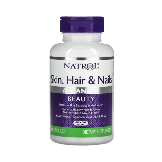 يتميز منتج دعم البشرة والشعر والأظافر المُقدم من ®Natrol بتركيبته الفعالة التي تحتوي على مكونات تعزيز الجمال في عبوة واحدة مدمجة وتتضمن هذه المكونات البيوتين، واللوتين، والكولاجين، وحمض الهيالورونيك من بين مكونات أخرى لدعم إشراقة البشرة، والشعر اللامع، والأظافر القوية.