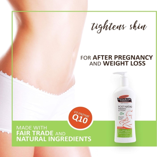 إن لوشن شد البشرة ما بعد الولادة من بالميرز لطيف على البشرة ولا يسبب تهيجًا لأنه خالٍ من الفثالات والبارابين. تسمح التركيبة غير المهيجة وغير الدهنية بتطبيق متساوي ويتم امتصاصها بشكل فعال.
