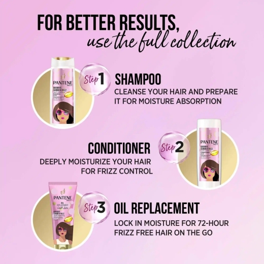 بديل الزيت لتحكم بتطاير الشعر - من بانتين: أضيفي إلى شعرك اللمعان والنعومة مع بديل الزيت بانتين برو-في وداعاً لتطايرات الصيف. ضعي القليل منه وافرديه على أطراف الشعر قبل تصفيفه لتستمتعي بشعر ناعم وبدون تطاير لمدة 72 ساعة