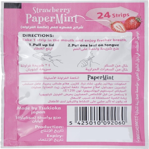 شرائح معطرة للفم نكهة الفرولة- من بيبر منتس: تمتع برائحة رائعة، بغض النظر عن المكان الذي تريد الذهاب إليه، مع عبوة معطر النفس برائحة الفراولة والنعناع من بيبر مينتس. تحتوي على أربع وعشرين قطعة مـصنوعة من مكونات عالية الجودة بدون أي سكر مضاف، حتى تتمكن من استهلاكها بشكل موثوق. تضفي نكهة الفراولة على هذا النعناع طعمًا حلوًا وفاكهيًا. علاوة على ذلك، فإن قوامها الذائب في الفم يجعل شرائح النعناع هذه أكثر متعة وسهولة وسرعة في الأكل.