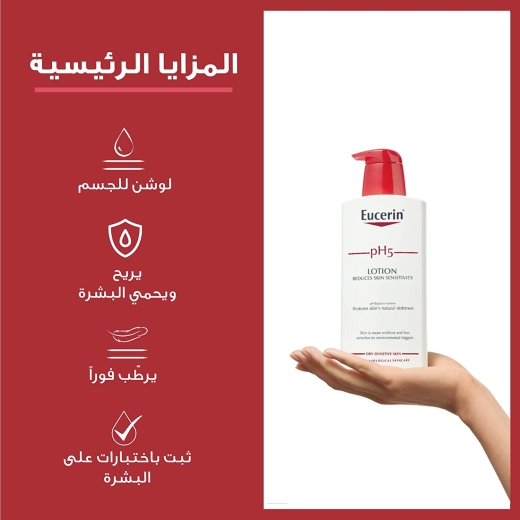 لوشن الجسم ph مرطب للبشرة الجافة والحساسة - من يوسرين: يرطب البشرة و يقلل من حساسية البشرة، ويوفر تصغيرًا يدوم طويلاً، يرطب ويمتص بسرعة، مناسب للاستخدام اليومي على البشرة المعرضة للحساسية يعزز من دفعات البشرة من الجفاف