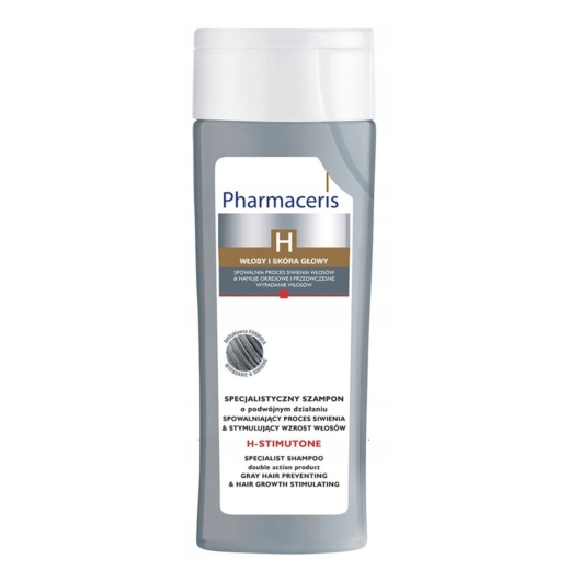 شامبو بمفعول ثنائي تأخير الشيب ومانع لتساقط - من فارماسيريز: ينظف شامبو اتش-ستيموتون فروة الرأس بلطف، مع تحسين حالة الشعر من خلال تركيبته المطورة علميًا. غني بالنارينجينين، يعمل هذا الملمس الهلامي على إبطاء شيخوخة الشعر واستعادة التصبغ الطبيعي، حيث يعمل مزيج مستخلص الجوز والكافيين على تغميق الشعر ويقويه تدريجيًا لتقليل ترقق الشعر أو تساقطه، ناهيك عن أن جوز عين الجمل