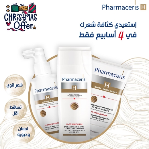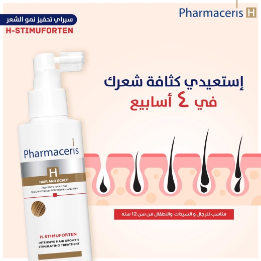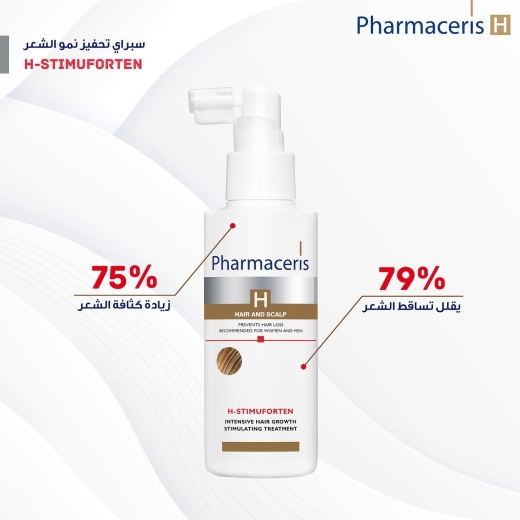 محلول بخاخ بمفعول ثنائي لمنع التساقط وتحفيز نمو الشعر - من فارماسيريز: يمنع الكافيين تساقط الشعر المحدد وراثيًا والصلع عن طريق تحييد التأثير السلبي للهرمونات (الأندروجين ، DHT).