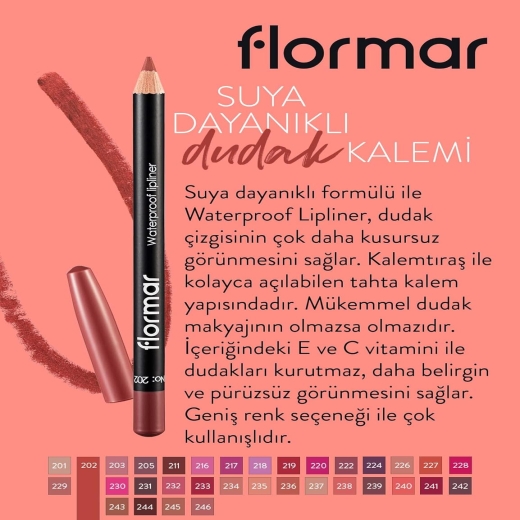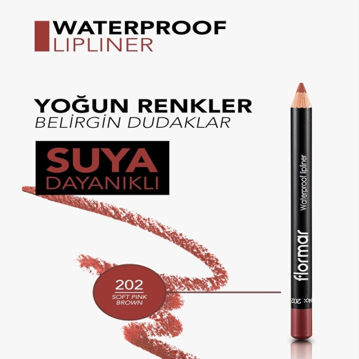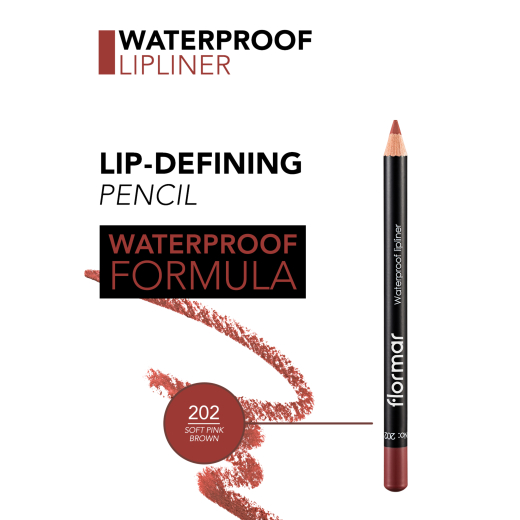 قلم تحديد شفاه مقاوم للماء سوفت بينك براون رقم 202 - من فلورمار: يساعدك قلم تحديد الشفاه المقاوم للماء على رسم شفتيك بسهولة ويضيف تحديدًا بفضل البوليمرات الخاصة في تركيبته. بالإضافة إلى ذلك، فإنه يزيد من القوة الدائمة لأحمر الشفاه الخاص بكِ عن طريق منعه من الاختلاط بألوان أخرى أو التشوه. قلم تحديد الشفاه فلورـمار المقاوم للرطوبة والعرق يجعل مكياج الشفاه الخاص بكِ يبدو سلسًا لفترة أطول. متوفر بألوان مختلفة، وسيوفر قلم تحديد الشفاه المقاوم للماء الأساس لمكياج الشفاه طويل الأمد.